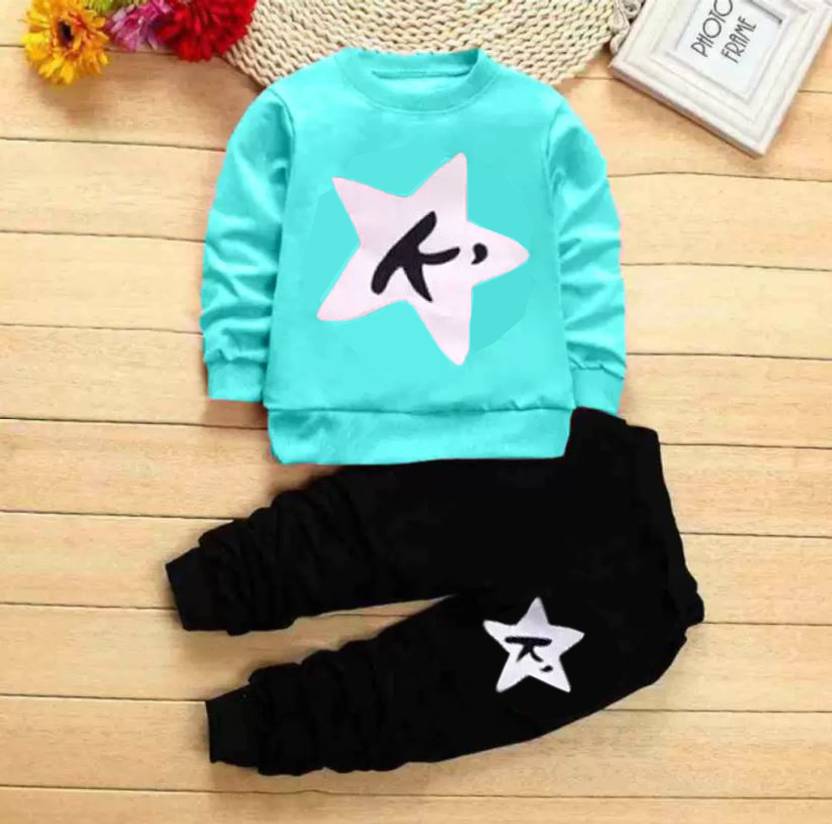 DRUZZEE Boys & Girls Casual T-shirt Pant (Light Blue)