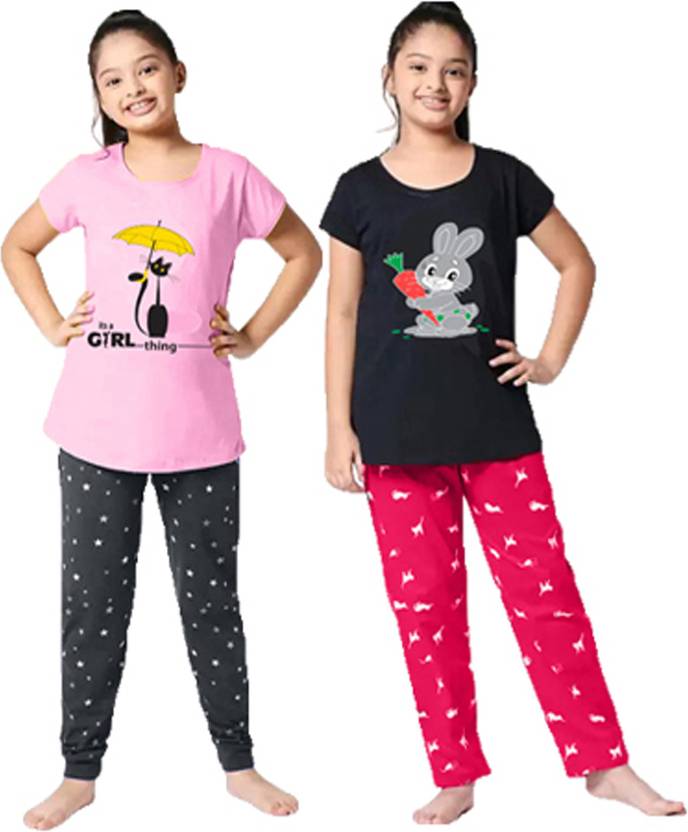 You can choose to wear it as it is or team it up with your pyjama. Half sleeves top with round neck and printed brings you refreshing feel for your nights. capri and Elastic waistband with a drawstring. We have a comprehensive range of kids garments which are suitable for diverse weather and different climates like summer, winter & rain. Our fashionable attire gives your loved ones a distinctive look in every occasion whether they carry them as party wear, casual wear, daily wear or a night wear.