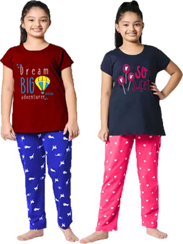 You can choose to wear it as it is or team it up with your pyjama. Half sleeves top with round neck and printed brings you refreshing feel for your nights. capri and Elastic waistband with a drawstring. We have a comprehensive range of kids garments which are suitable for diverse weather and different climates like summer, winter & rain. Our fashionable attire gives your loved ones a distinctive look in every occasion whether they carry them as party wear, casual wear, daily wear or a night wear.