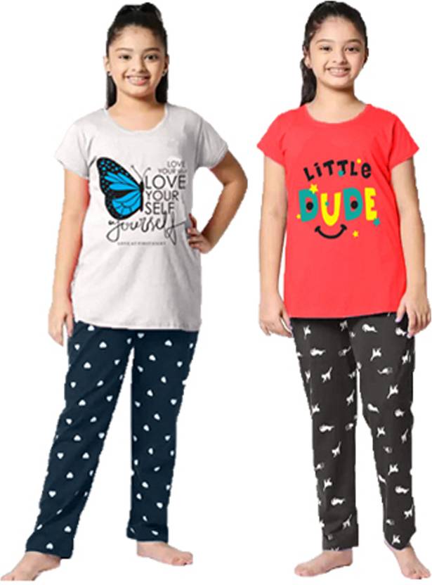 You can choose to wear it as it is or team it up with your pyjama. Half sleeves top with round neck and printed brings you refreshing feel for your nights. capri and Elastic waistband with a drawstring. We have a comprehensive range of kids garments which are suitable for diverse weather and different climates like summer, winter & rain. Our fashionable attire gives your loved ones a distinctive look in every occasion whether they carry them as party wear, casual wear, daily wear or a night wear.
