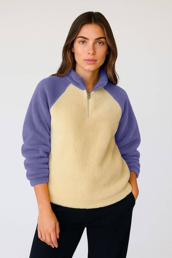 Women Full Sleeve Color Block Sweatshirt
