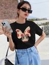 Women Graphic Print Round Neck Pure Cotton Black T-Shirt