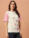 THE DRY STATE Printed Women Round Neck Pink, White T-Shirt