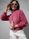 THE DRY STATE Self Design High Neck Casual Women Pink Sweater