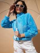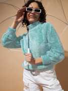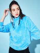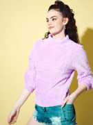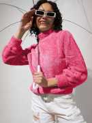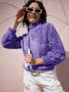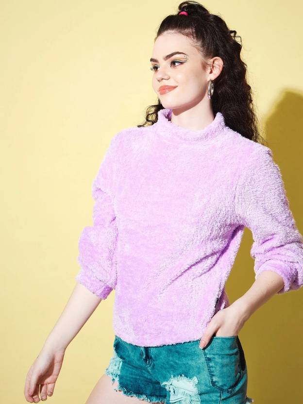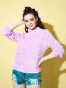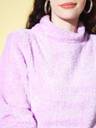 THE DRY STATE Self Design High Neck Casual Women Purple Sweater