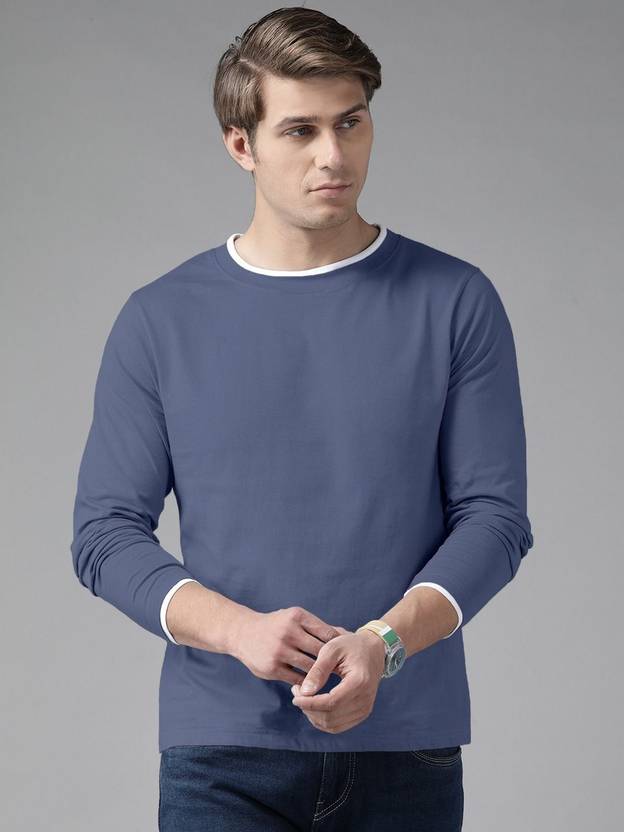 THE DRY STATE Solid Men Round Neck Blue T-Shirt