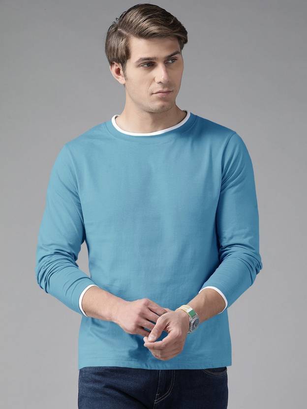 THE DRY STATE Solid Men Round Neck Light Blue T-Shirt