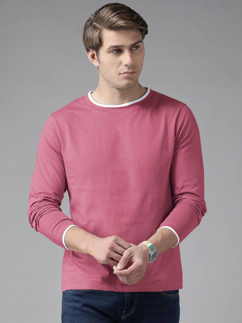 The Dry State Mens Solid Round Neck Full Sleeves Pink Color T-shirt