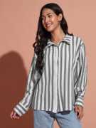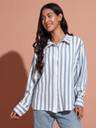 THE DRY STATE Women Striped Casual Blue Shirt