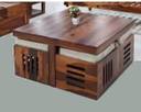 DRYLC FURNITURE Solid Sheesham Wood Coffee Table With Four Stool For Dining Room / Cafe Solid Wood Coffee Table (Finish Color - Provincial Teak, Pre-assembled)