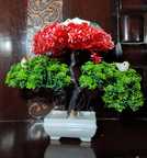 ds Artificial Pink & Green Bonsai flower pot (pack of 1, Hight-30 cm) Pink, Green Anthurium Artificial Flower with Pot (12 inch, Pack of 1, Flower Bunch)