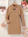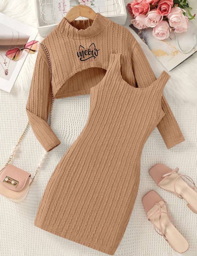 DS ENTERPERISES Indi Girls Above Knee Party Dress (Brown, Full Sleeve)