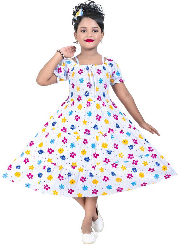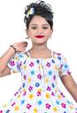 This stylish floral printed fit and flare dress is crafted from soft and breathable fabric to ensure all-day comfort. It features puff sleeves and a smocked bodice for a trendy look. The vibrant multicolor floral print adds charm and makes it an ideal choice for birthday parties, family functions, or casual outings. Pair it with cute sandals or ballerinas for a complete and adorable look.