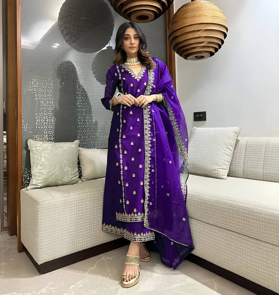 DSK Studio Solid Kurta, Trouser/Pant & Dupatta Set