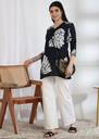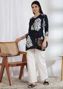 Elevate your wardrobe with this elegant women's floral printed rayon kurti, designed to offer a blend of comfort and style. Featuring a soft rayon fabric, attractive prints, and a flattering V-neckline, this kurti is perfect for office, casual outings, or daily wear. The 3/4 sleeves with unique striped detailing add a modern twist. Pair it with jeans, palazzos, or trousers for a smart, chic look.
