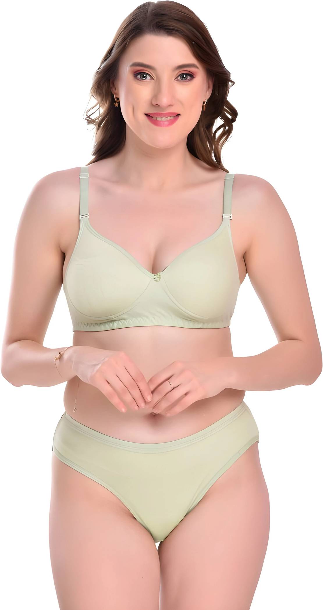 DSN Introducing the Women's Cotton bland Lightly non Padded Wirefree Bra and Panty set, a versatile essential designed to provide all-day comfort and support. Specifically tailored for B cup sizes, this bra ensures a snug and flattering fit, enhancing your natural curves while offering dependable support.