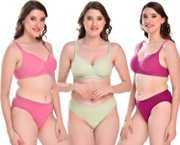 DSN Introducing the Women's Cotton bland Lightly non Padded Wirefree Bra and Panty set, a versatile essential designed to provide all-day comfort and support. Specifically tailored for B cup sizes, this bra ensures a snug and flattering fit, enhancing your natural curves while offering dependable support.