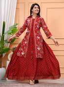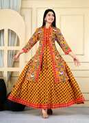 DSS FASHION Women Printed Anarkali Kurta (Orange)