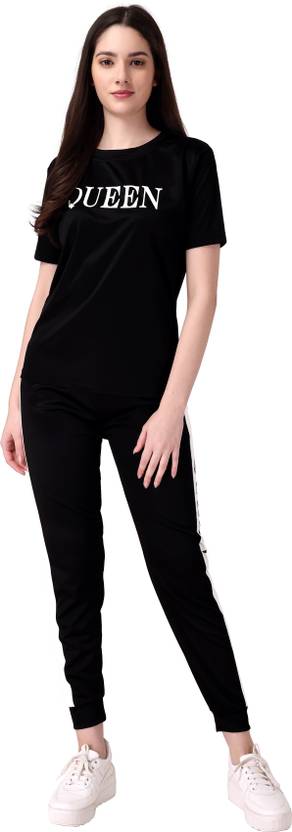 DTR FASHION versatile stretchable QUEEN Letter Printed premium Lycra Tshirt And Leggings, ideal for party wear & daily wear. ::Designed with perfection these T shirts And Leggings will surely make your looks worth flaunting. Made from 95% super combed premium Lycra and 5% spandex, fine quality fabric. Extra panel stitch for better stretch and fitting for almost all adult body size. Best quality sewing thread used for adjustment of stretch. Soft elastic for waist band for extra comfort. Addictive comfort skin soothing. Azo free dyes used for skin care, track suit for women,tracksuit for women,gym wear women full set,women track suit,gym dress women,track suit for women,tracksuit for women,tracksuit,women track suit,gym outfit women,