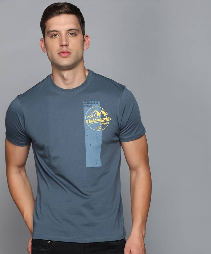 DUCATI Solid Men Round Neck Grey T-Shirt