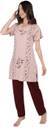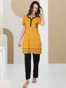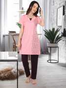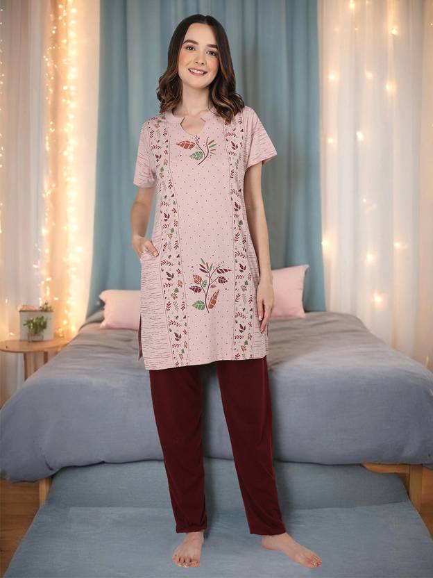 Duchess women's long length night suit set is very comfortable and must have piece in women's wardrobe. It has short sleeves, side pockets with side slits which is perfect. Easy washable poly-cotton fabric giving you the best comfort and softness remain even after the wash. This nightsuit of duchess has long length shirts which is comfortable for active wear,gym wear, maternity wear, night wear, casual wear. Stay comfortable all day long in this nightwear set, whether its lounging around or casual wear use. Featuring a soft cotton construction, this free-size night suit , presented in a set of two pieces, is a comfortable and stylish piece that will add a refreshing touch to your night time attire. The strechable fabric does'nt restrict body movements, thus, keeping you relaxed throughout the night.Purpose: Night Dress for women cotton , sleepwear - loungewear - home wear for women. Material: Cotton |Printed Night Suit for Women Cotton; Two piece Nightwear: Printed Top + Pyjama (pajama sets for women).night suit shorts for women