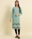 DUCOHIVE Women Self Design Wool Straight Kurta  (Light Green)