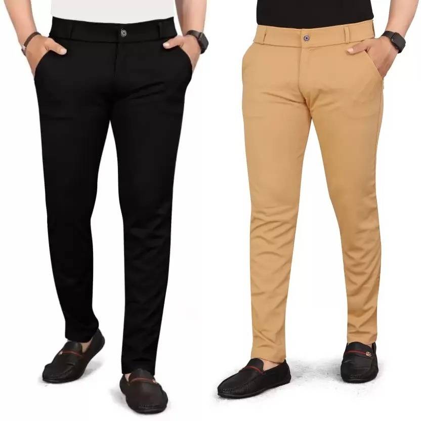 Pack of 2 Men Regular Fit Black, Brown Lycra Blend Trousers