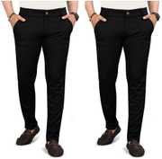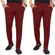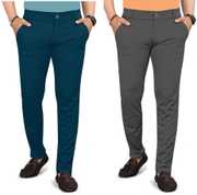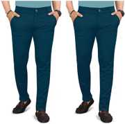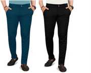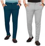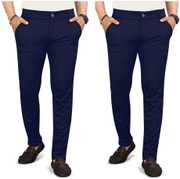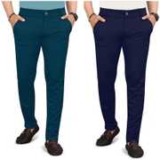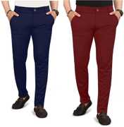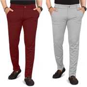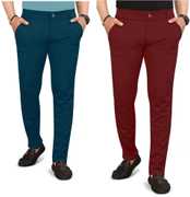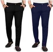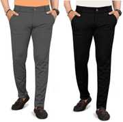 Pack of 2 Men Regular Fit Multicolor Lycra Blend Trousers