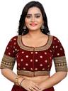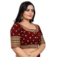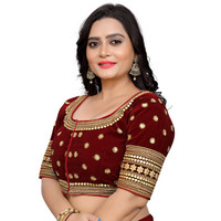 Thanks to its festive aesthetic and thoughtful design, this blouse serves well for diverse occasions. It balances visual appeal with everyday comfort, whether worn to a festival, traditional ceremony, or evening party. This blouse's versatile appeal complements different ethnic outfits, making it a practical choice for events that call for grace and tradition. Thus, with a combination of embroidery, velvet richness, and easy fastenings, this blouse blends function with fashion for repeated wear.