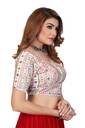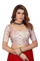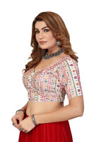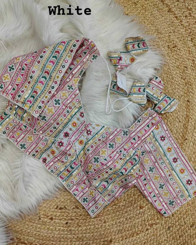Flaunting an intricate embroidered pattern with subtle embellishments, this women’s blouse blends tradition with visual appeal. The detailed stitching is complemented by small reflective elements, creating a subtle shimmer that enhances festive wear. The embroidery work adds depth and an ethnic touch, offering a look that feels rich without being overwhelming.