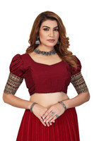 Featuring a solid pattern, this women's blouse is enhanced by heavy embroidery on the sleeves, adding a distinct ethnic appeal. And, it features a lace detailing along the neckline and hem, which adds a delicate and elegant touch to the design. The beautifully embroidered patterns bring a handcrafted feel that suits festive and occasion wear well.