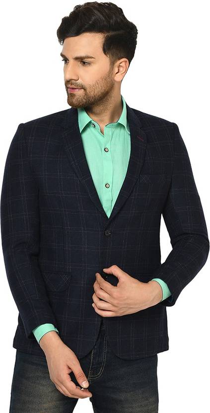 DUKE Checkered Single Breasted Casual Men Blazer (Blue)