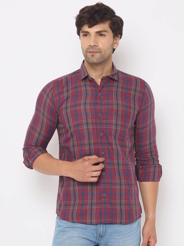 Men Slim Fit Checkered Spread Collar Casual Shirt