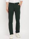 Men Slim Fit Green Pure Cotton Trousers