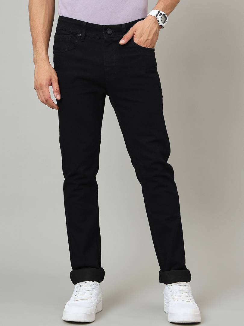 Men Slim Mid Rise Black Jeans