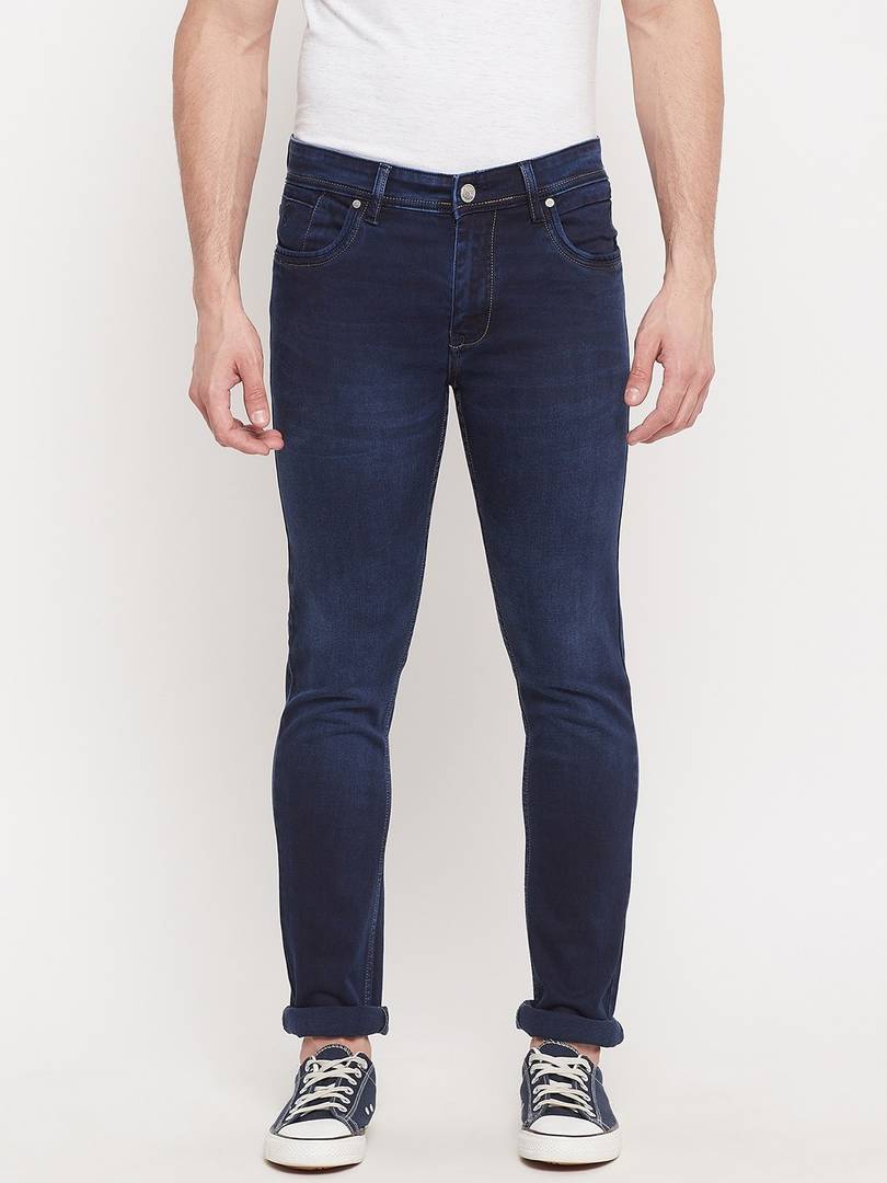 Men Slim Mid Rise Blue Jeans