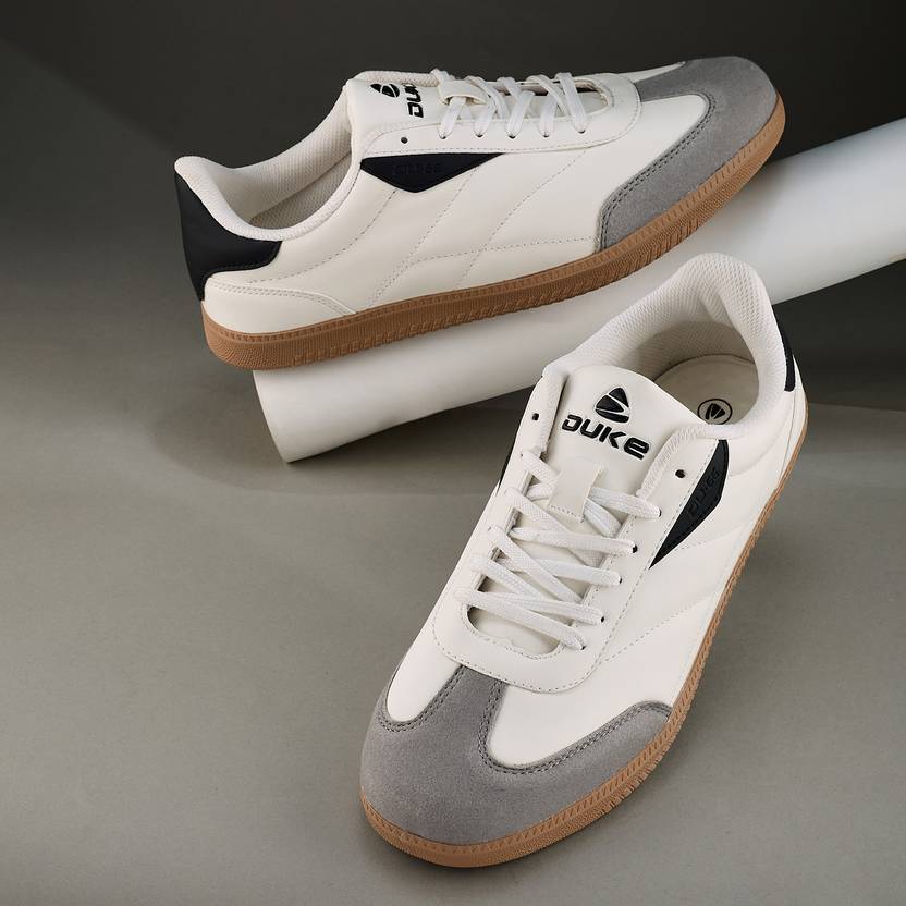 These Duke men's retrosolid sneakers feature lace-up fastening for a secure fit. The synthetic upper provides durability, while the TPR sole offers traction and support. With a fabric lining and PU padded insole, these sneakers ensure comfort for all-day wear. The solid pattern adds a stylish touch.