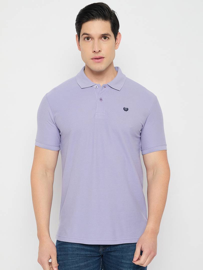 Men Solid Polo Neck Cotton Blend Purple T-Shirt