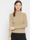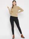DUKE Solid Turtle Neck Casual Women Beige Sweater