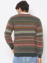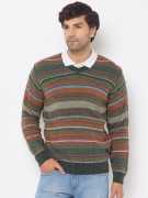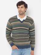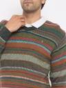 Men Striped V Neck Green Sweater