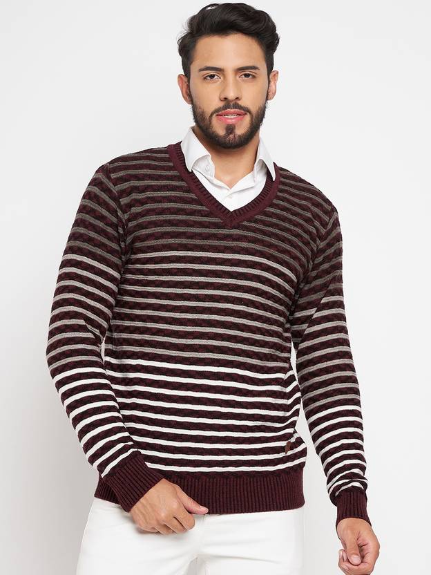 DUKE Woven V Neck Casual Men Maroon Sweater