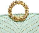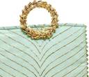 Add a touch of elegance to your traditional attire with our exquisitely crafted {Pista Green} Ring Handle Potli Bag, made with premium silk and gota embroidery.