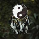 DULI Present Canvas Dream catcher Ying Yang Print with Black-White Feathers. It is a good choice for home décor, and indoor-outdoor photo shooting decoration, hang it in your bedroom as it is considered auspicious and brings positivity and calmness with its vibrant colors. It is a nice present for a blessed event, or a housewarming party to share gladness and deliver happiness. These beautiful dream catchers can also be used as wall-hanging art and which gives peaceful dreams.