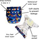 Dumbledo BlueHero Reusable Eco-Friendly Dry Feel 1 Cloth Diaper With Insert