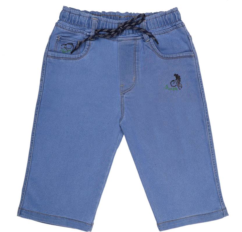 Boys Regular fit,Sky Blue,Drawstring Elastic Waistband,Stretchable Cotton Denim, Clean Look,Casual,Below Knee Length, 3/4 Shorts, Casual Wear, Daily Wear,Stylish Wear