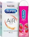 Air Condom-Great sex can be an incredible way of bringing two people closer together. For a feeling of deep connection and real intense contact, a thinner condom can make all the difference. Durex Air condoms have been designed to provide the same high level of security and protection but are designed to feel more natural with ultra-thin latex for greater sensitivity. The condoms also smell better which helps avoid unpleasant distractions and you can relax and enjoy to the fullest. Each Durex condom is dermatologically tested to ensure strength and a high level of protection. No method of contraception can give you 100% protection against pregnancy, HIV or sexually transmitted infections. Please read the instructions, especially when using condoms for anal or oral sex. Try different Durex condoms or indulge in Durexs Play range of lubricants and ring to make love-making comfortable and exciting!Cherry Flavoured Lubricant-Durex Play Cheeky Cherry Lubricant Gel is a completely safe lubricant gel for smooth and comfortable love-making with your partner. Rich with the aroma and the taste of cherries, its suitable for oral, vaginal and anal sex and is even sugar free so you can indulge without any kind of guilty feelings. Durex has a range of personal lubricants, ideal to experiment with, until you find the one that suits you best. From time to time, your body might not always produce as much moisture as you need. The lubricant can be used to ease vaginal dryness and create an intimate comfort and help make things more exciting. Being water-soluble, they dont stain and are is easily washable. You can also indulge in Durexs Play Vibrations ring to make love making more exciting!