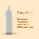 Maximize your pleasure with Durex Extra Dots condoms. These condoms have uniquely positioned raised dots texture designed to maximize stimulation for you and your partner. The condoms also smell better which helps avoid unpleasant distractions and you can relax and enjoy to the fullest. Each Durex condom is dermatologically tested to ensure strength and a high level of protection. No method of contraception can give you 100% protection against pregnancy, HIV or sexually transmitted infections. Please read the instructions, especially when using condoms for anal or oral sex. Try different Durex condoms or indulge in Durex’s Play range of lubricants and ring to make love-making comfortable and exciting!