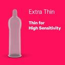 Durex Extra Thin Condom is a super-thin condom designed for greater sensitivity. It promises you a sleeker feel and heightened sensitivity while providing the same level of reassurance and protection as a regular condom. Available in 3 flavours: Strawberry, bubblegum and intense chocolate.
