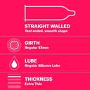 For a deep connection and real intense contact whilst maintaining the same level of security and protection and excitement with flavours, Durex Extra Thin Condoms can make all the difference, Transparent, lubricated condoms shaped with a straight wall and teat end to provide a better fit during sex