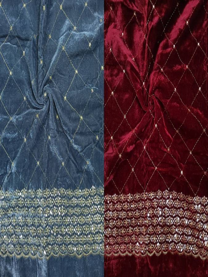 Durga Unstitched Velvet Blouse Material Embroidered